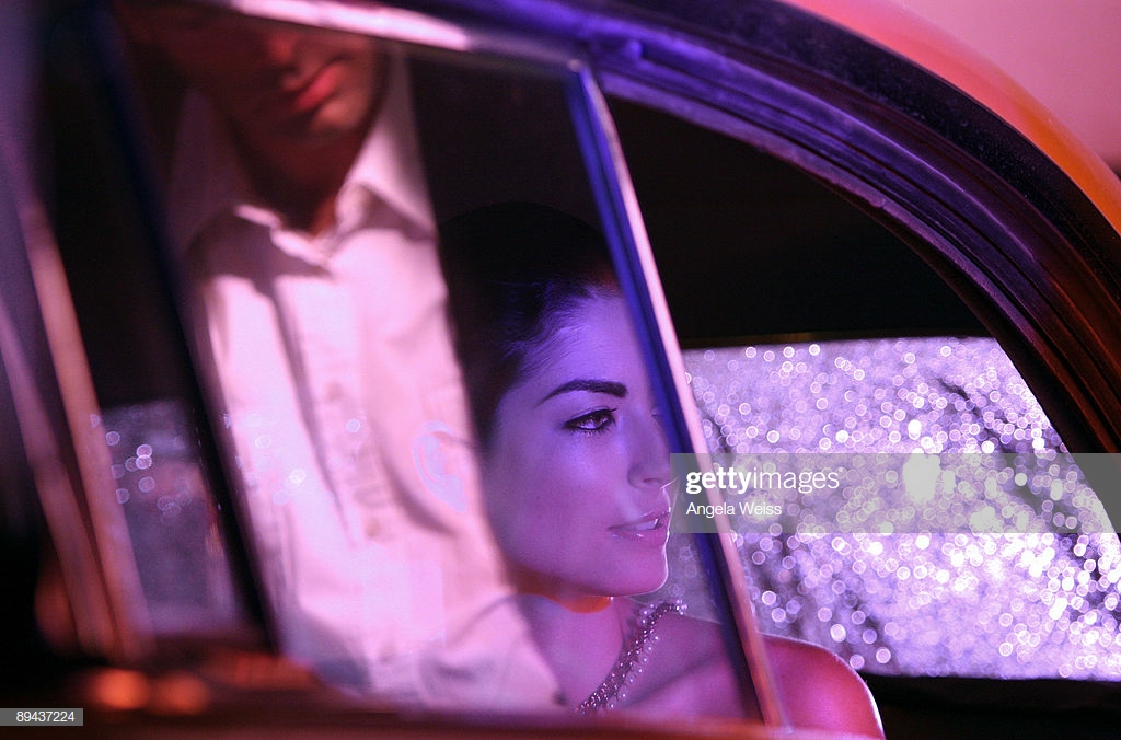 In the back seat of the taxi